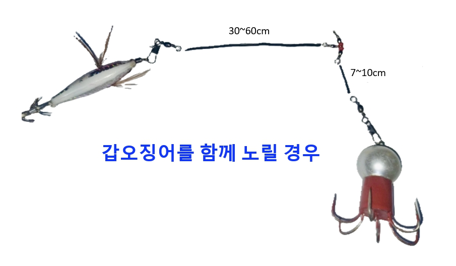 - 하단 가지줄 6~8cm + 에기 2.5호