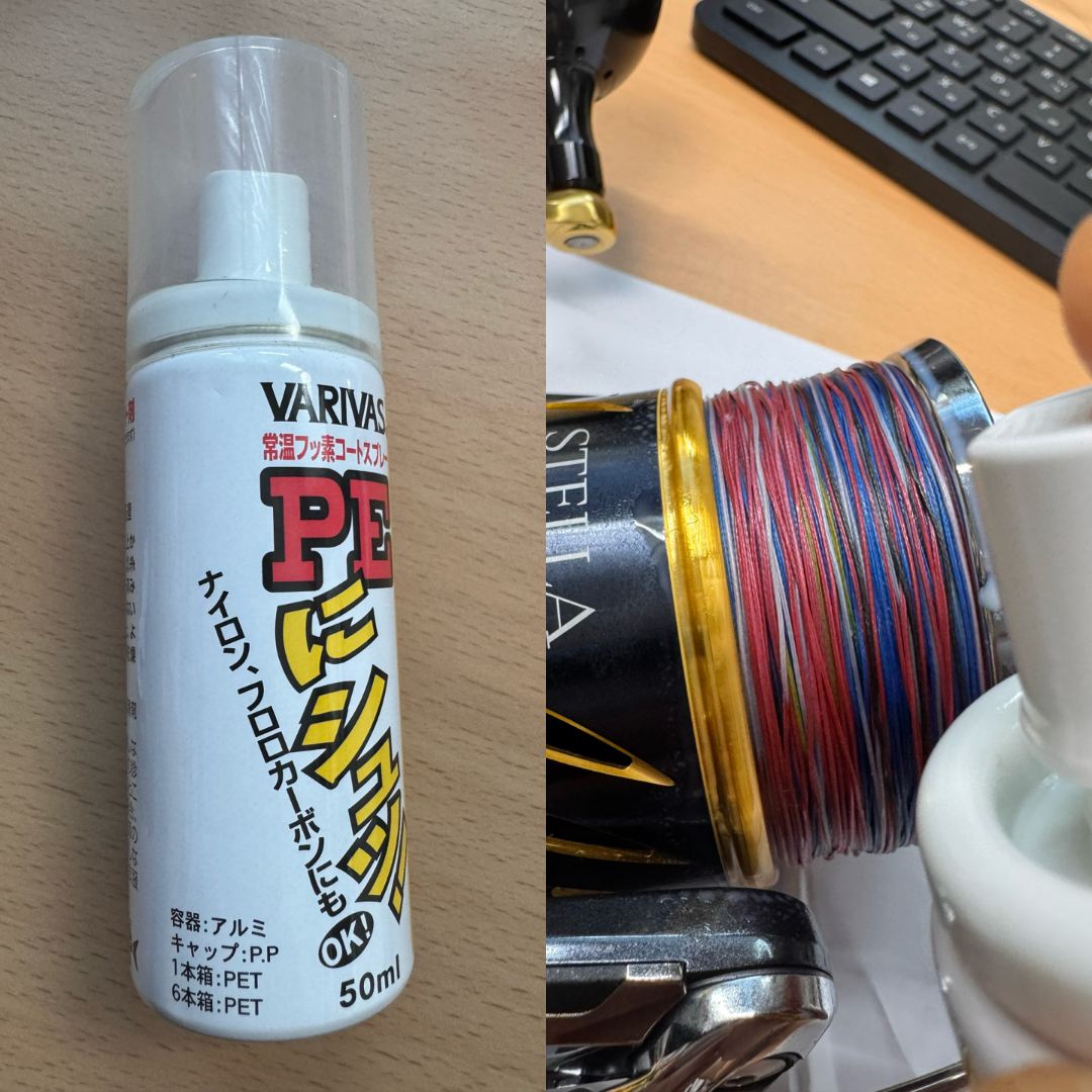 - 건조 후 사용한 만큼 조금씩 풀어서 합사 코팅제를 뿌려줍니다. 물론 자주 합사를 교체해 주는 것이 최선이기는 하지만 현실적으로 쉽지 않으니 오래 쓰시려면 코팅해주는 것을 추천드립니다. 특히 캐스팅 게임 같은 비거리를 중요하게 생각하는 낚시의 경우 꼭 필요한 절차이니 참고하셔요^^