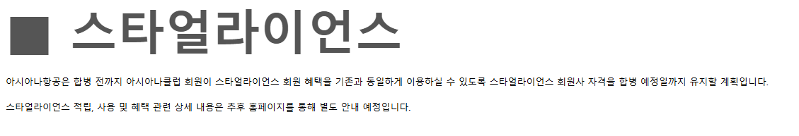 • 스타얼라이언스 제휴는 종료 예정 (합병 전까지 기존과 동일하게 유지)
