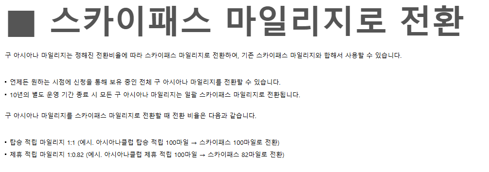 많은 분들이 궁금해하시는 마일리지 전환 비율, 사용처, 유효기간 등을 아래에 모두 정리해드립니다.