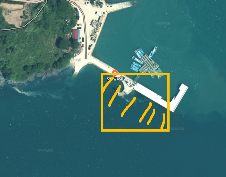 - 방파제 돌기 지점 주변: 바닥 구조 복잡 → 회유로 가능성