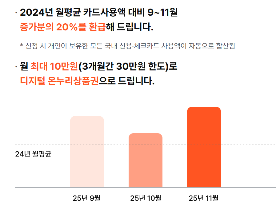 - 2025년 9~11월 카드 사용액이 전년도 평균보다 높아야 환급 가능