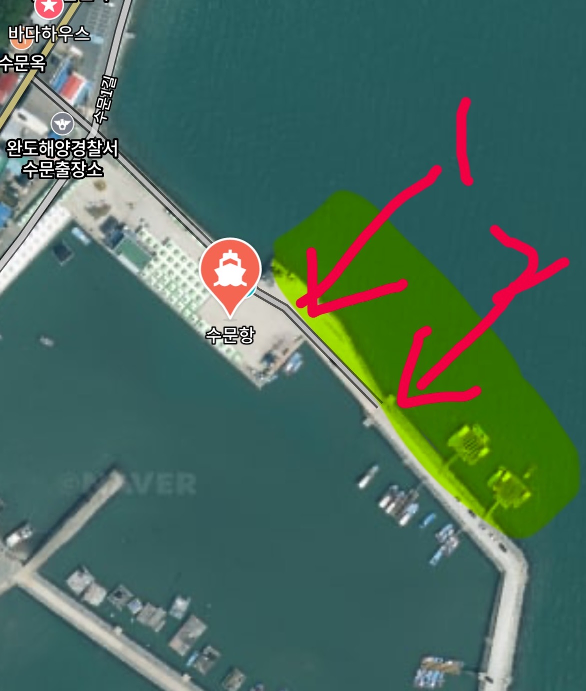 - 방파제 전 구간이 포인트이지만, 형광색 표시 구간이 핵심 포인트