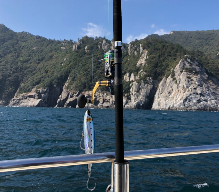 파도 속에서 중심이 무너지면 슬랙이 생깁니다. 난간 등 지지할 곳을 정하고 미끄러지지 않는 앞뒤 스탠스를 유지하세요. 대부시리가 배 밑으로 깊게 파고들면 파이팅벨트에서 즉시 빼 겨드랑이로 견착해 로드의 밴딩 허용각을 넘기지 않도록 합니다. 배 뒤로 도는 런이 나오면 텐션을 유지한 채 견착 상태로 이동하세요. 선장님께서 배를 빼주신다면 각도 회복 후 다시 컵에 꽂고 파이팅을 이어갑니다.