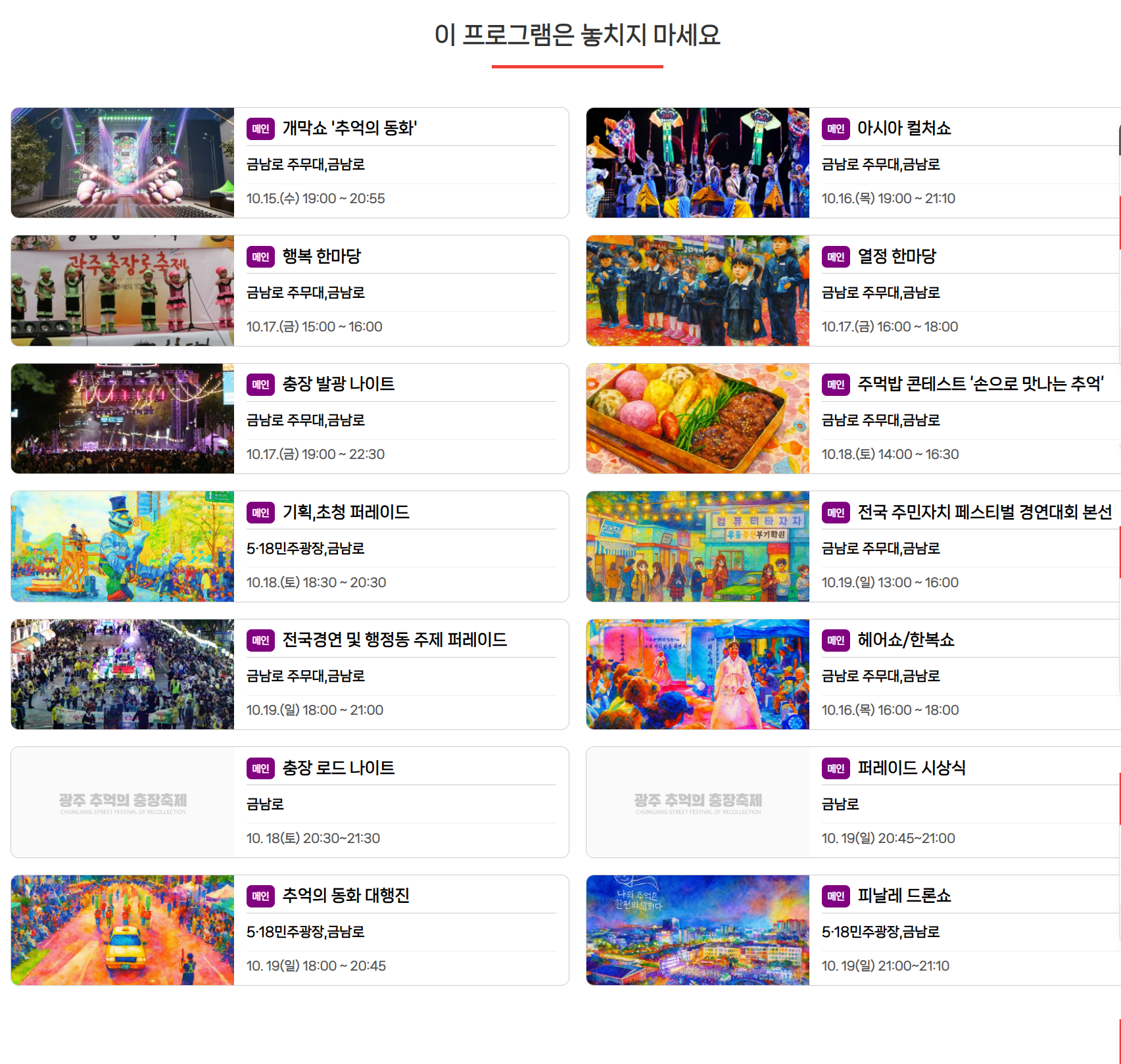 🎉 2025 광주 충장축제 일정 요약
